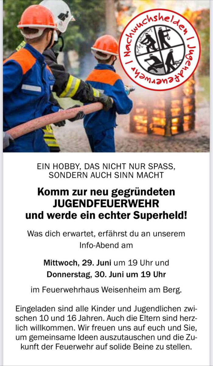 Komm zur neu gegründeten JUGENDFEUERFWEHR und werde ein echter Superheld!